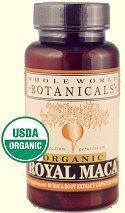 Oraganic Royal Maca by Whole World Botanicals 180 VegCap Oraganic Royal Maca 180 VegCap SAupports Elimination pf Peri-Menopause Systoms Lepidium peruvianum meyeni Made with USDA Certified Organic Maca Roots Gluten Freedom Suggested Use As a dietary supplement WOMEN For menopause take 3-12 caps per day with meals depending on severity of symptoms. For PMS take two caps per day. MEN Take 2 caps daily or 6 caps twice weekly to promote healthy sexual func- tioning. To support Healthy Hormone Balance 1-2 caps daily or as directed by a physician. Periodic rest from Royal Maca is recommended except for those with severs symp- toms. This could be 1 day per week or one-two weeks every 3 months. - Or as directed by your healthcare professional. Supplement Facts Serving Size Two Casules Servings Per Container 90 Amount Per Serving Daily Value Total Carbohydrates 0.66 g 1 Selenium 2.49 mcg 6.6 Maca Root 1000 mg Percent Daily Values are based on a 2 000 calorie diet Other Ingredients (Capsules) Ce