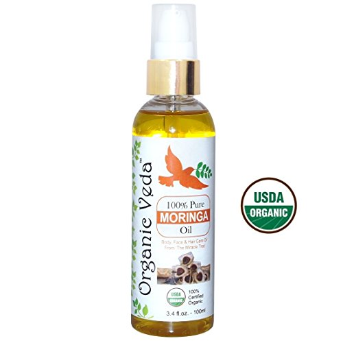 ORGANIC VEDA MORINGA oil is made from 100% pure organic Moringa seed KERNEL by cold pressing. It is best for skin care, massage and aromatherapy applications. Moringa oil is chock-full of radiance-boosting fatty acids, vitamin A & Vitamin C. Moringa Oil is highly valued in the cosmetic industry for its unique property. Moringa oil is light and spreads easily on the skin. Moringa oil has exceptional anti ageing properties. The antioxidants and the nutrients present in the Moringa oil help to curb the activity of the free radicals on the skin. Moringa oil, as olive oil is useful in lifting dirt out of the hair and is an efficient natural cleanser. Good antioxidant properties, considered to be the factor behind its remarkable stability. By simply wetting the hair, massaging the oil into the scalp and rinsing can effectively clean and moisturize the scalp. It has nourishing and emollient properties, making it an excellent Massage Oil, which leaves the skin with a silky feeling. Rich in Palmitoleic, Oleic and Linoleic acids, Vitamins A and C and unsaturated fatty acid, Moringa oil has excellent moisturizing and nourishing qualities. Moringa oil is the most stable oil in nature and it does not go rancid. Moringa seed oil is rich in Palmitoleic, Oleic and Linoleic acids, Vitamins A and C and unsaturated fatty acids. The addition of Moringa Seed Oil produces a rich and creamy lather and unlike any plant based oil, actually increased the cleaning ability. Regular use diminishes the formation of blackheads for all skin types. It keeps skin healthy & glowing. Moringa oil is used in body and hair care as a moisturizer and skin conditioner. It antioxidants do wonders for aging and nutrient-depleted skin.It is able to purify the skin, balance the secretion of oil & remove skin fatigue.