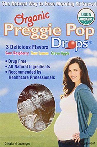 The newest product offering is our Preggie Pop Drops made with Organic ingredients that include: organic evaporated cane juice, organic brown rice syrup, Natural Favors (made from essential oils) and Natural Colors... The 12pk box includes three of our most popular flavors: Sour Lemon, Sour Raspberry & Green Apple. 12 Lozenges per box