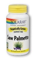 Organic Saw Palmetto Berry 555mg by Solaray 100 Capsule SOLARAY Organic Saw Palmetto is organic and certified organically processed in accordance with Oregon Tilth standards and the California Organic Foods Act of 1990. Size 100ct 555mg Directions As a dietary supplement take two capsules two or three times a day with meals or a glass of water. Serving Size 2 Capsule 50 Servings per container Ingredients Amount per serving Daily Value + Organic Saw Palmetto (Serenoa repens) (berry) 1.11 g Total Carbohydrate 1 g 1 Key to Ingredients Daily Value not established. + Percent Daily Value is based on a 2 000 calorie diet. Values differ depending on age Values differ depending on age Other Ingredients Vegetable Cellulose (capsule) Other See product label for more information.