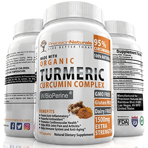 Organic Turmeric Curcumin with Bioperine. 1500mg/serving Highest Potency Available. Premium Pain Relief & Joint Support w/ 95% Standardized Curcuminoids. Non-GMO, Gluten Free Capsules w/ Black Pepper