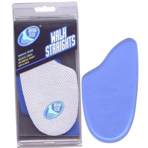 Unsightly run-over heels and rapid, uneven wear-down of shoe soles can be caused by normal aging or improper physical body and limb alignment. Whatever the reason, you may be putting excessive strain on your bones and joints. This can result in pain and discomfort. Ortho-Tech Walk Straights give your heels comfort while reducing uneven shoe wear. Their innovative visco-gel construction allows the wedge to compress with each step and absorb shock. They are specially designed to improve foot posture and relieve stress on your ankles, knees, hips and lower back. Ortho-Tech Walk Straights correct run-over heels, compensate for incorrect walking habits, relieve heel, foot and low back pain. They eliminate unsightly shoe sole wear.