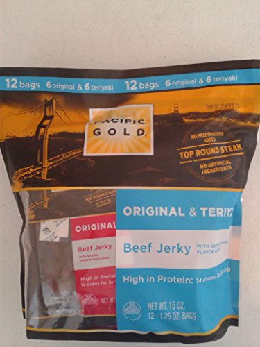 PACIFIC GOLD ALL NATURAL 97% FAT FREE BEEF JERKY VARIETY PACK (12 - 1.25 OZ Bags, NET WT 15 OZ)