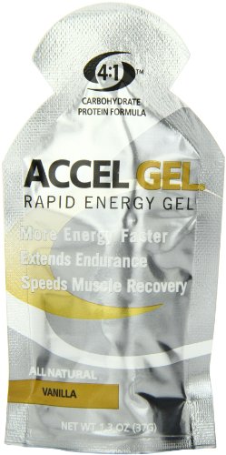 ACCEL GEL is the only sports gel that contains the patented 4:1 carbohydrate to protein ratio, which significantly increases endurance, reduces exercise-related muscle damage, and accelerates exercise muscle recovery. Available in convenient single serving packets. What' s the 4:1? It' s the unique ratio of 4 parts carbohydrate to 1 part protein in Accel Gel, that fuels superior endurance, performance, hydration and recovery.