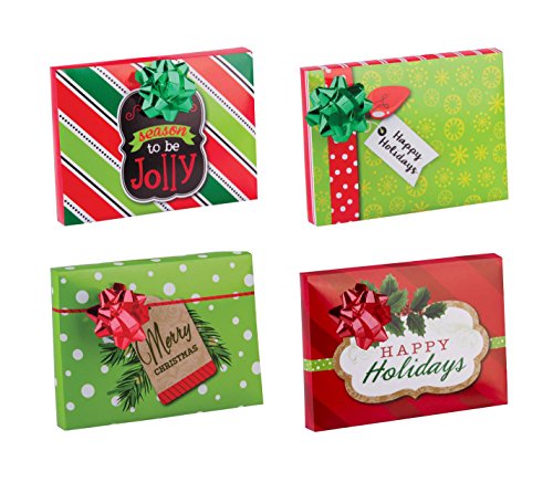 Pack of 4 Christmas Gift Card Holder Box with Decorative Bow for Small Gifts or Gift Cards