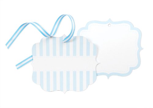 - Light blue and white styling tags