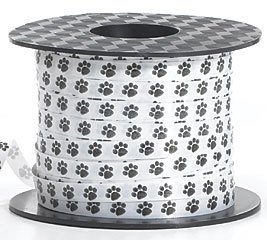 200 yards of Curling Paw Print Ribbon. Ribbon measures 1/4" wide x 200 yards long.Great with our paw print balloons, for crafting or wrapping gifts.