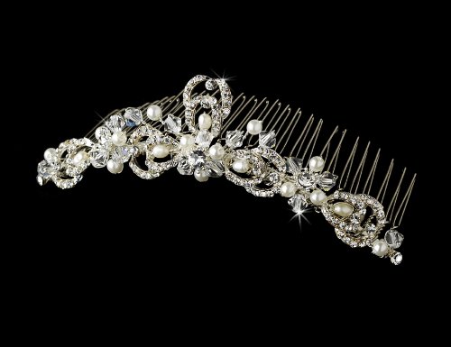 - A truly enchanting alternative to the full tiara, this piece features creamy freshwater pearls, Swarovski crystals, and rhinestones, all arranged into a lovely floral pattern on top of a rhinestone encrusted silver ribbon backdrop.