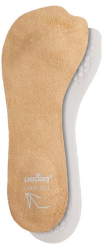 Extra slim insole cushions for high heels sandals and pumps prevent the burning sensation in the balls of the feet. Relieves pressure on the heels and alleviates pain. Comfortable gel makes walking and standing easier and ensures a fantastic sense of well-being. Sensitive joints and the back are preserved thanks to the anatomical shaped cushion. The narrow insole fits perfectly in any shoe can be worn barefoot or with tights. The velour microfiber surface is kind and gentle to the skin.