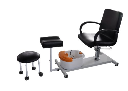 This fully adjustable Hydraulic Pedicure Unit is built with a sturdy steel frame, comfortable dense foam padded seat and footrest. The hydraulic pump in the seat allows for full adjustment for all customers and the footrest is manually adjustable to make your work easy and convenient. The easy-clean removable footbath has a massage, bubble, and heat functions - which can each be toggled independently if you like so you can customize the treatment based on your client's needs. The free matching technician stool on wheels is for your comfort during pedicure treatments. It comes with Electric Footbath. This portable bubbling, heating,and Massaging footbath can be used for pedicures, or for your personal use for a soothing, relaxing spa treatment at home! Use the footbath with or without water and soothe the aches and pains out of your tired feet. •Heavy Duty Steel Frame! •Easy to install (Assembly required) •Stylish crosshatch stitching on chair provides comfort and elegance •FREE matching technician stool •Heavy duty hydraulic pump make height adjustment easier •3.5" Small cell high density foam for extra comfort of your client •Slimline Hydraulic Pump with 24" round base •Inside Seat Dimensions: 18" x 20" •Back Dimensions: 19" x 22.4" •Seat cushion is 3.5" thick, extra comfort for your client. •Back can recline up to 135 degree. •Hydraulic Adjustable Height: 19.6" to 22.5" •Package dimension: 42x23x19 in. Net weight is 70 lbs •FootBath: ◦Sturdy lightweight plastic footbath can be easily filled and emptied with water from your tap. ◦Stimu-Nodes to work out aches and pains on the soles of your feet ◦Internal heating element helps to slow water cooling, so your hot water stays hot longer during treatment ◦Large Massage Ball integrated in the center of the footbath to work on particularly sore muscles ◦Multiple Massage Modes of Operation