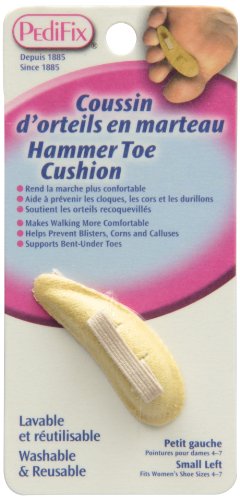 Hammer Toe Cushion eases pressure on toe tips as it comforts and supports bent-under toes. This soft, contoured pad also relieves forefoot pain while helping prevent blisters and corns. Adjustable toe loop holds cushion securely in place. Soft, durable top cover.