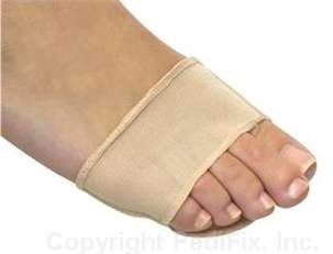 Wide forefoot sleeve keeps exclusive Visco-Gel® in place under metatarsal heads to cushion, protect and soothe.
