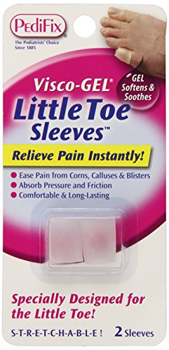 Visco-GEL Little Toe Sleeves are sized specifically to fit the pinky toe. They slip on easily and surround the toe with a soothing Gel that absorbs pressure and friction. Relieve corns, blisters, ingrown nails, pinching, cramping and more. Fit comfortably in most shoes.