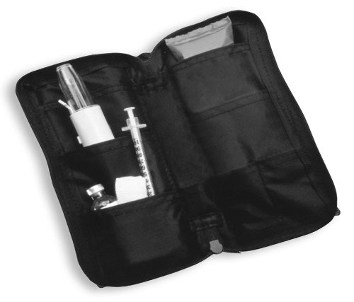 - contains interior pockets for medicine, syringes and injector