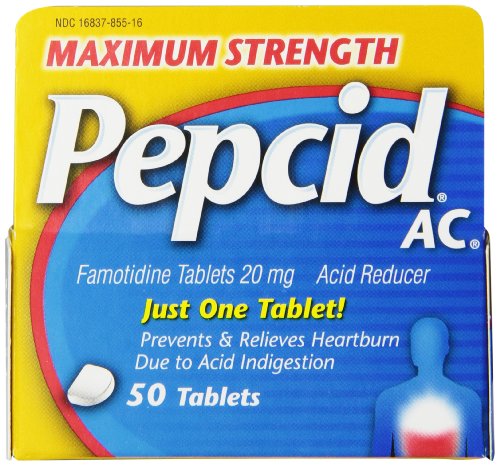 Pepcid AC Acid Reducer, Maximum Strength, prevents and relieves heartburn due to acid indigestion with just one tablet (read package insert before use). Pepcid AC prevents heartburn due to acid indigestion brought on by eating and drinking certain foods and beverages.