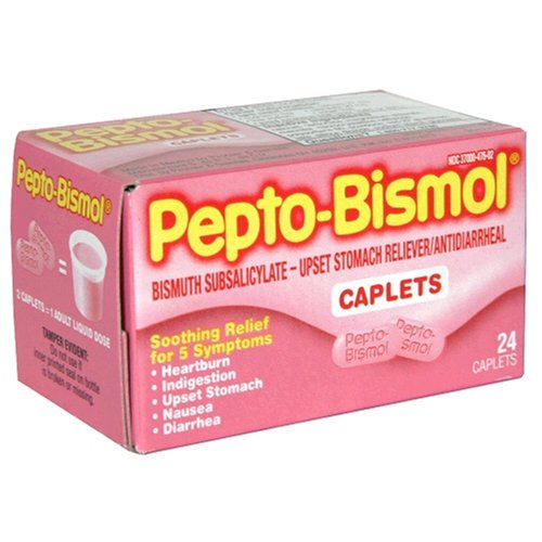 Bismuth Subsalicylate. Soothing Relief for 5 Symptoms: Heartburn; Indigestion; Upset stomach; Nausea; Diarrhea. Each Caplet Contains: Calcium 27 mg; Sodium 3 mg; Salicylate 99 mg. Low sodium. Sugar free. 2 Caplets = 1 Adult liquid dose. Made in Mexico.