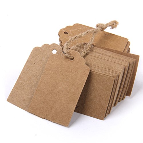 Phenovo 100pcs Paper Blank Card DIY Gift Tags Rectangle Label Brown