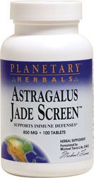 Astragalus Jade Screen by Planetary Herbals 100 Tablet New Page 1 Astragalus Jade Screen Formerly Jade Screen Supports Immune Defenses Planetary Formulas Astragalus Jade Screen is a classic Chinese herbal formula (Yu Ping Feng Wan) which combines premium-grade Astragalus membranaceus with the Chinese tonics atractylodes and siler. This is one of the most relied-upon formulas in Chinese herbalism to strengthen immune resistance. The ancient texts say this preparation will 'protect you from the cold winds as if surrounded by a screen of jade.' Modern research has confirmed the use of astragalus to support immune defenses and enhance macrophage activity. Supplement Facts for 850 mg Serving Size 2 tabs Amount DV Sodium 5 mg 2 Dietary Fiber 1 g 4 Calcium 145 mg 15 Proprietary Blend 1.7 g Astragalus Root (Premium Grade) Atractylodes Root and Siler Root. Other Ingredients dibasic calcium phosphate stearic acid modified cellulose gum acacia gum colloidal silicon dioxide and magnesium stearate
