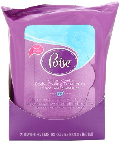The feeling of your cold washcloth, wherever you go. Poise Body Cooling Towelettes offer an instant cooling sensation and refreshment when used during a hot flash. Apply to your neck, face or chest. Each resealable pack contains 20 towelettes.