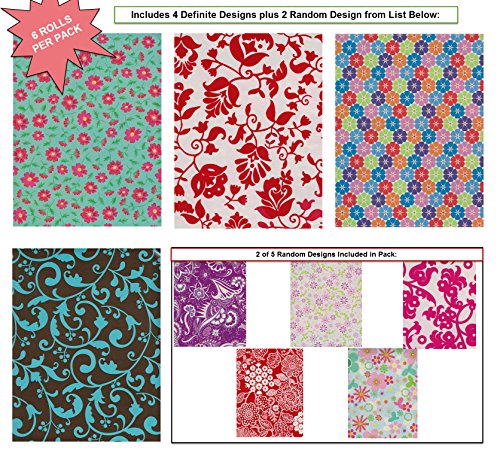 - 6 Different rolls of 8ft x 30 in or 20 sq ft of wrapping paper