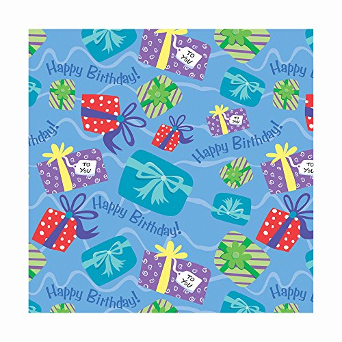 Add a splash of fun to packaging presents with this roll of Birthday Gifts Wrapping Paper. Featuring an assortment of presents swimming on an ocean blue background, this Birthday Gift Wrap is an ideal way to dress up presents for any birthday party. Measuring 5 feet, this roll of gift wrap paper is sure to last for a several birthdays.