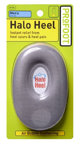 Instant relief from heel spurs and heel pain! Painful heels and heel spurs need instant relief. That's why our halo-shaped heel cushions lift, support, and surround heels so that the painful area never touches the ground. Halo Heel contains millions of tiny air bubbles that cushion and soften every step. Money-back guarantee from manufacturer, PROFOOT Inc.