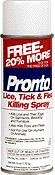 INDICATIONS: Pronto Lice, Tick & Flea killing Spray. To Kill Lice and Louse Eggs: Spray in an inconspicuous area to test for possible staining or discoloration. Inspect again after drying.