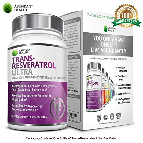 Abundant Health Trans-Resveratrol Anti-aging Blend Supplement with Green Tea, Acai, Grape Seed Extract, and Antioxidant Vitamin C, 60 Capsules