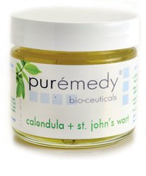 Puremedy Calendula & St. John's Wort Cream Bio-Ceuticals. 100% food grade, natural, organic or wild harvested ingredients. Ingredients: Organic shea butter, organic cocoa butter, organic olive oil, organic calendula flowers, organic st. john's wort.