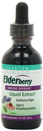 Elderberry Extract Liquid, 2 oz., QuantumElderberry (Sambucus nigra) has immune enhancing, laxative, and diuretic properties and may be helpful for colds, constipation, fluid retention, colic, diarrhea, colds, coughs, nerve disorders, back pain and fever. As a tea or aid to the diet. Use 30-50 drops in hot or cold water 3-5 times daily as a system strength booster for cold and flu season. Elderberry Extract, Nutritional relief of cold and flu symptoms. If for any reason you are not satisfied with a Quantum product, return it to your place of purchase for a full refund. This herb is unfumigated and processed to retain all possible vital elements. Ingredients: Elderberry Extract (sambucus nigra), Alcohol (20% alcohol), Distilled Water.