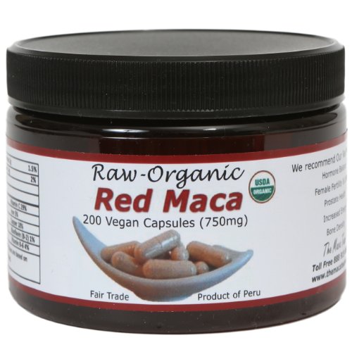 Red Maca Capsules - Organic, Raw, Vegan, Fair Trade - GMO-free - 750mg - 200ct