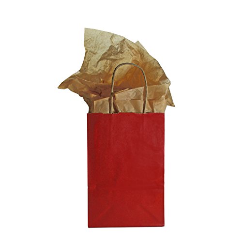 - Natural kraft paper bag with flat dark and deep red tint ink.