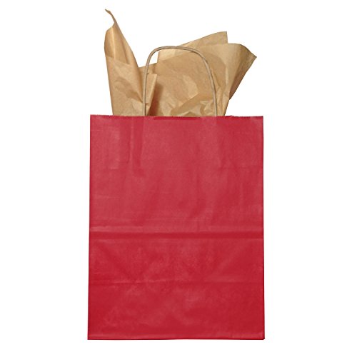 - Natural kraft paper bag with flat dark and deep red tint ink.
