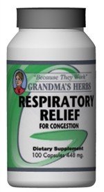 For centuries, mullein has been cultivated in Scotland and also in England as an herb that would help lung problems. Mullein contains a good amount of potassium and calcium phosphate, which is why it is so effective. These two organic salts are essential for rebuilding tissue, the nervous system, bone structure and in maintaining the body. It is an excellent herb for the respiratory system, and has been known as an astringent, which opens air passages allowing the person to breath more freely. Mullein is the leading herb in Grandma's herbal RESPIRATORY RELIEF formula. This all natural formula is designed to relieve congestion in the bronchioles and the trachea. The herbs act as bronchial dilators, which open up the bronchi to allow better oxygen exchange, and expectorants, which aid the body to expel phlegm and mucus. Some of the herbs are emollient and indirectly soothe and heal the raw irritated mucus membranes.