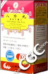 This is a patent remedy based on the ancient recipe "Ba Zhen Tang" (Eight Precious Ingredients Decoction; Eight Treasure Decoction) in TCM originally appeared in Cataloged Essentials for Correcting the Body (Zheng Ti Lei Yao), which is primarily used for tonifying qi and blood in cases of deficiency both of qi and blood, pale complexion, dizziness, dim eye-sight, lassitude of limbs, shortness of breath, disinclination to talk, palpitation, insomnia, pale tongue with thin and whitish coating, thready and feeble pulse.