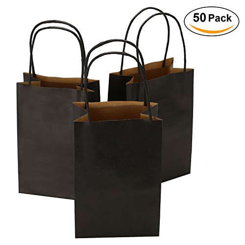 - ✔Strong and Versatile Bags: They are strong and sturdy paper bags that can carry at least 3lbs of weight easily.These bags are made with thick plain black kraft paper and have a strong rope handle. The box type bags have a flat bottom so they can stand well.