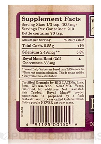 Usda Organic For Vitality, Libido ; Hormone Balance Lepidium Meyenii / Peruvianum Dietary Supplement Maca Root Certified Organic By Bio Latina