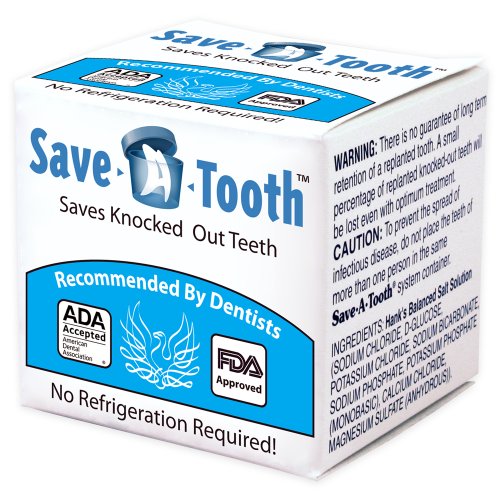 You have 15 minutes to save a knocked out tooth before it begins to die. Save-A-Tooth will preserve and nourish a knocked out tooth for up to 24 hours until it can be replanted by a dentist. Pick up the tooth by the enamel, drop it in the Save-A-Tooth and screw the cap on. It's that easy. It is the only tooth preserving system in the world that uses a custom retrieval net to prevent damage of the tooth in transport and makes it easy for the dentist to remove or rinse the tooth without damaging it. Save-A-Tooth is also the only system containing hanks balanced salt solution, the scientifically tested and proven medium for revitalizing and preserving a knocked out tooth. Save-A-Tooth is also the only tooth preserving system to gain the ADA seal of acceptance from the American dental association. Save-A-Tooth is a great addition to any first aid kit since it's one item that you either have or you don't at the time of an accident. If you don't save your real tooth, an implant can cost you over 4,000 dollars and needs to be replaced every 5-10 years. Your natural tooth will last forever, will never discolor, and only costs about 300 dollar to replant. Get Save-A-Tooth today and keep you and your family protecounted.