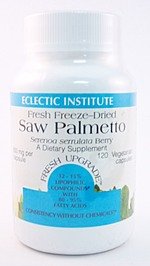 Saw Palmetto 600mg Freeze-Dried by Eclectic Institute 120 VegCap Saw Palmetto 600 mg. 120 veg caps Each 600 mg. capsule contains 100 Fresh Freeze-Dried Wildcrafted Serenoa serrulata berry. Average Assay 81 mg. Total Lipophilic Compounds (13.5 ) containing 80-95 Fatty Acids. Calculated as Ether soluble extractives. Contains Co-Factors of Whole Saw Palmetto berry including Organic Acids Resins Essential oils Polysaccharides.