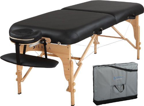 The Sierra Comfort SC-1001 Luxe Portable Massage Table is ideal for the person who appreciates superior quality and value. This massage table is made of environmentally sustainable materials of high quality with maple hardwood legs. Coated tension wires connect maple wood leg supports for solid durability.