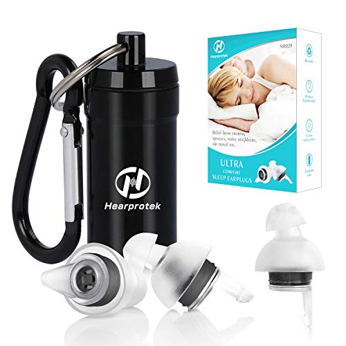 - [ULTRA COMFORTABLE] Made in HYPOALLERGENIC & NON-TOXIC material which is durable and lasting with proper care.With unique ergonomically-shaped design, Hearprotek sleep ear plugs will cozily fit your ear and sufficiently muffle noise for a restful night's sleep.