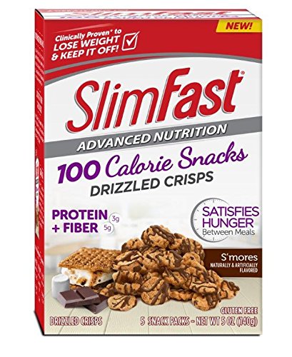 Satisfy Your Hunger With Slim Fast Delicious drizzled mini crisps. Each snack pack is 100 calories with about 20-22 crisps in each bag. This snack will satisfy hunger between meals. 2g of protein and 5g of fiber.
