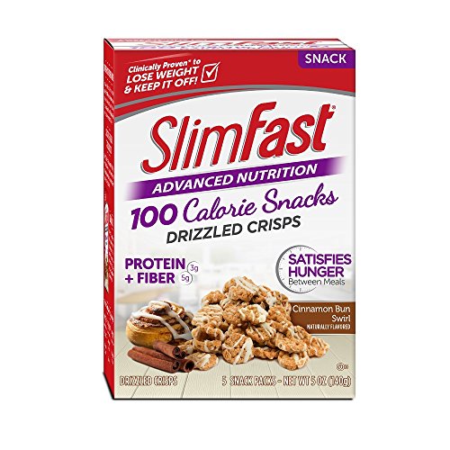 Satisfy your sweet tooth with SlimFast Cinnamon Bun Swirl Drizzled crisps that are a delicious treat at only 100 calories per serving.
