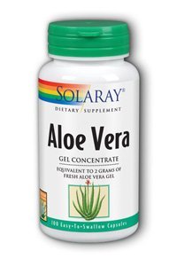 Aloe Vera Gel 2000mg by Solaray 100 Capsule 2 000 mg. equivalent Size 100ct 2000mg Directions As a dietary supplement take 2 or 3 capsules two times a day with meals or a glass of water. Serving Size 1 Capsule 100 Servings per container Ingredients Amount per serving Daily Value + Proprietary blend Ginger (Zingiber officinale) (root) Peppermint (Mentha piperita) (leaf) Parsley (Petroselinum crispum) (aerial) 440 mg Aloe Vera Concentrate (Aloe officinalis) (inner gel) (equivalent to 2 g of fresh Aloe Vera gel) 10 mg Key to Ingredients Daily Value not established. + Percent Daily Value is based on a 2 000 calorie diet. Values differ depending on age Values differ depending on age Other Ingredients Gelatin (capsule) Other See product label for more information.