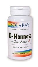 D-Mannose with CranActin by Solaray 60 Capsule D-Mannose is a natural sugar (similar to glucose) that has been studied for its potential to support a normal health urinary tract. CranActin Cranberry AF extract has also been added to help create the ultimate bacterial antiadherence formula Directions Take two vegetarian capsules daily with a meal or glass of water. Serving Size 2 Capsule 30 Servings per container Ingredients Amount per serving Daily Value + Sugars 1 g Calories 5 Total Carbohydrate 2 g 1 Vegetable Cellulose Capsule Cellulose Magnesium Hydroxide Silica and Magnesium Stearate Vitamin C (as Ascorbic Acid) 30 mg 50 D-Mannose 1000 mg Cranberry (Vaccinium macrocarpon) (berry extract) (as CranActin Cranberry AF Extract) 400 mg Key to Ingredients Daily Value not established. + Percent Daily Value is based on a 2 000 calorie diet. Values differ depending on age Values differ depending on age