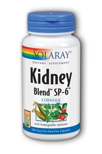 SP-6 Kidney Blend by Solaray 100 Capsule Size 100ct Directions As a dietary supplement take two capsules one to four times a day with meals or a glass of water. Serving Size 2 Capsule 50 Servings per container Ingredients Amount per serving Daily Value + Short Buchu (Barosma betulina) (leaf extract) Queen of the Meadow (Filipendula ulmaria) (flower) Cornsilk (Zea mays) (silk) Parsley (Petroselinum crispum) (aerial) Uva Ursi (Arctostaphylus ura-ursi) (leaf) Cleavers (Galium apenine) (aerial) Cayenne (Capsicum annuum) (fruit) Juniper (Juniperus communis) (berry) Kelp (Laminaria spp.) (whole) 940 mg Key to Ingredients Daily Value not established. + Percent Daily Value is based on a 2 000 calorie diet. Values differ depending on age Values differ depending on age Other Ingredients Gelatin (capsule) Maltodextrin and Magnesium Phosphate 3x Other See product label for more information.