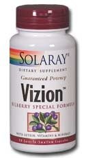 Vizion Bilberry Special Formula by Solaray 90 Capsule Size 90ct Directions As a dietary supplement take 3 capsules once or twice a day with meals or a glass of water. Serving Size 3 Capsule 30 Servings per container Ingredients Amount per serving Daily Value + Taurine 100 mg Quercetin (from Juponica saphora bark) 100 mg L-Glycine 100 mg L-Glutamine 100 mg Blueberry (Vaccinium spp.) (berry) 200 mg Lutein (from marigold flowers) 3 mg Bilberry (Vaccinium myrtillus) (berry extract) (Guaranteed 25 mg 36 anthocyanosides) 42 mg L-Cysteine 75 mg Chromium (as chromium polynicotinate) (ChromeMate) 50 mcg 41 Zinc (as zinc citrate zinc amino acid chelate and zinc picolinate) 15 mg 33 Selenium (as L-selenomethionine) 50 mcg 71 Vitamin E (as d-alpha tocopheryl succinate) 150 IU 500 Vitamin B-6 (as pyridoxine HCl) 7.5 mg 375 Vitamin A (from natural retinyl palmitate and 80 as natural beta carotene) 12500 IU 250 Vitamin C (as ascorbic acid) 1 g 1666 Riboflavin (Vitamin B-2) 17 mg 1000 Key to Ingredie