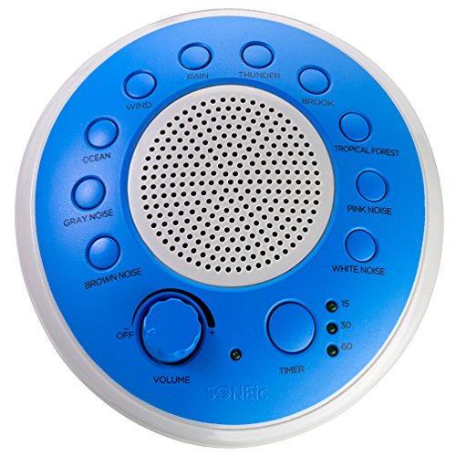 SONEic - Sleep, Relax and Focus Sound Machine. 10 Soothing White Noise and Natural Sound Tracks, with Timer Option. Crystal Clear Quality Sound Speaker and 3.5mm Headphone Jack, with Volume Control. USB or Battery Powered. Portable and Stylish - Blue