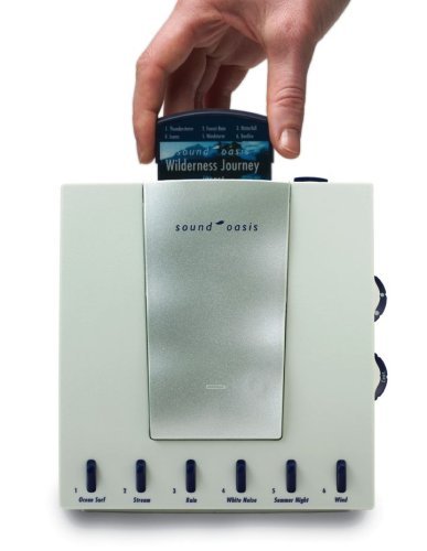 Sound Oasis is a unique sound relaxation product that allows you to create your very own sound environment. By bathing your room with the world's most authentic sounds of nature, Sound Oasis blocks out irritating noises and creates a peaceful atmosphere so you fall asleep easier, get higher quality sleep, enhance concentration and feel more alert throughout the day! Sound Oasis is also a proven tool for coping with the effects of tinnitus. Sound Oasis represents the next generation in sound conditioners by incorporating the world's first "sound card" technology which enables users to add new sounds to their Sound Oasis unit by simply inserting an optional memory card containing 6 different sounds. A jumbo digital alarm clock makes telling time easy and allows you to wake to a buzzer or nature sound alarm. Incorporating a multiposition timer (with 4 selections: continuous, 30, 60, and 90 minutes), a unique "gradual off" volume reduction feature for a peaceful decrease in sound volume, a rotary on/off volume control, headphone jack and an off/ resume button that stops the unit or repeats your last played sequence at the touch of a button, Sound Oasis is a perfect bedside companion. Sound Oasis also features an omnidirectional reflective speaker that projects the sound from the back of the unit for rich, deep sound. The unit's unique design allows the unit to be mounted to a wall, used flat on its back, or in an upright position for minimal use of table space. Sound Oasis can be powered by 4 "AA" batteries (not included) for traveling, or by an AC adapter (included) for convenient use at home or the office.