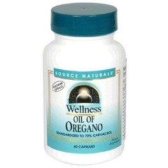 Wellness Oil of Oregano by Source Naturals Inc. 60 VegCap Oil of Oregano 60 VegCap Product Source Naturals OIL OF OREGANO is from wildcrafted true oregano (Origanum vulgare) an aromatic herb that is native to the Mediterranean region. Traditionally oregano was used to support digestive respiratory and joint health. Recent in vitro research indicates that carvacrol an active constituent of oil of oregano may provide support to the immune system. Source Naturals Oil of Oregano is the most potent on the market and is standardized to 70 carvacrol. Suggested Use As a dietary supplement 1 to 3 capsules daily - Or as directed by your healthcare professional. Supplement Facts Serving Size 1 Capsule Servings Per Container 60 Amount Per Serving Daily Value Wildcrafted Oregano Oil (Origanum vulgare) 45 g Yielding approximately carvacrol 30 mg Daily Value Not Established Percent Daily Values are based on a 2 000 calorie diet Other Ingredients lecithin vegetable cellulose and olive oil (cold press